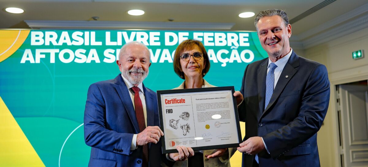 “É o reconhecimento de um país que tem no agronegócio, na pecuária, uma das suas mais importantes vertentes econômicas. Esse certificado é o reconhecimento da robustez e da confiabilidade do nosso sistema de defesa agropecuária. Mesmo sem a vacinação, está comprovado que a febre aftosa não circula em nosso país”, reforçou o presidente Lula.